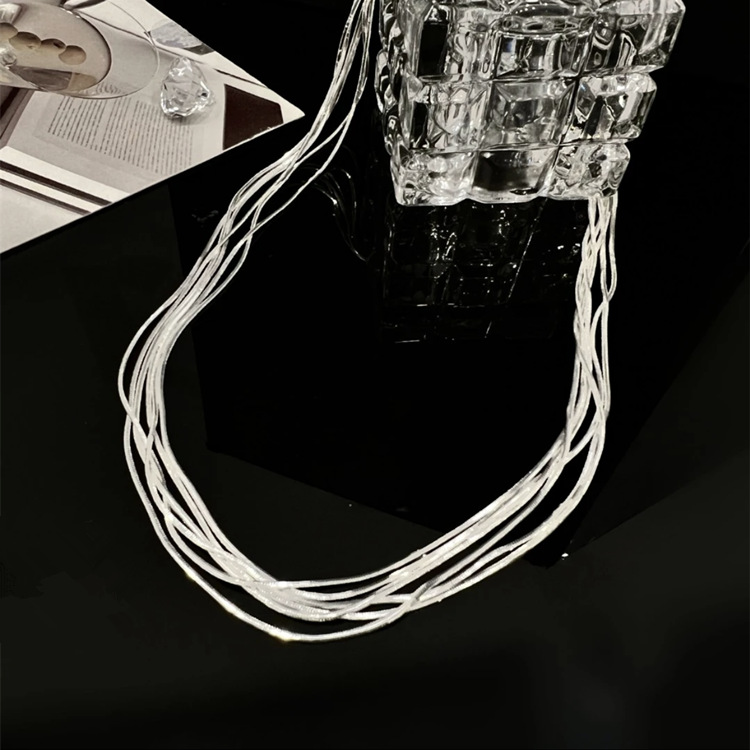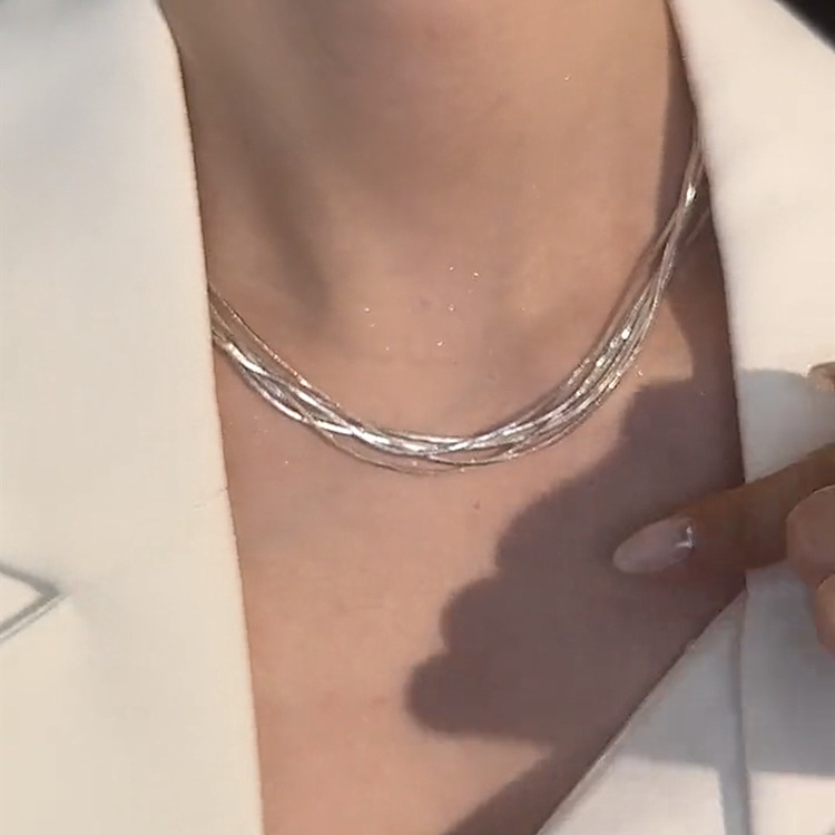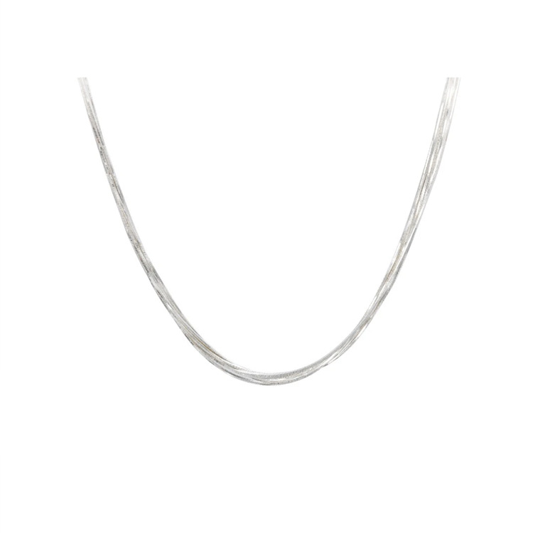 30代ファッションにぴったりの上品なシンプルネックレス。 細身のチェーンを重ね付けしたような洗練されたデザインで、どんなスタイルにも合わせやすい万能アクセサリー。 オフィスからプライベートまで幅広いシーンで活躍します。