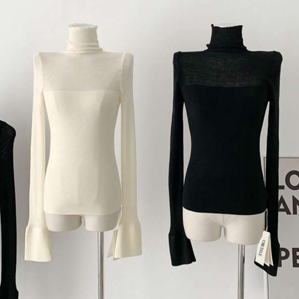 30代ファッションを洗練する上品な細身シルエットのハイネックニット。