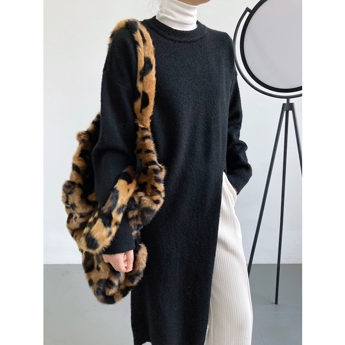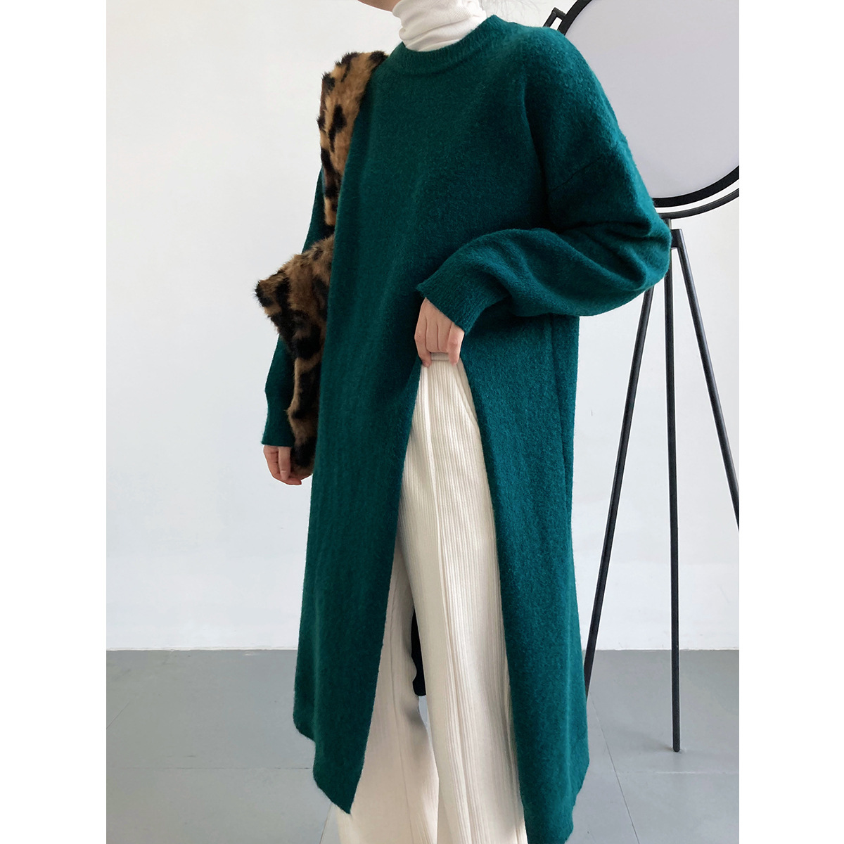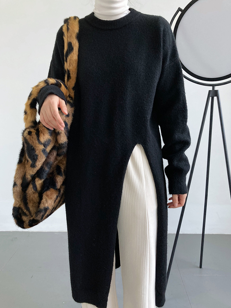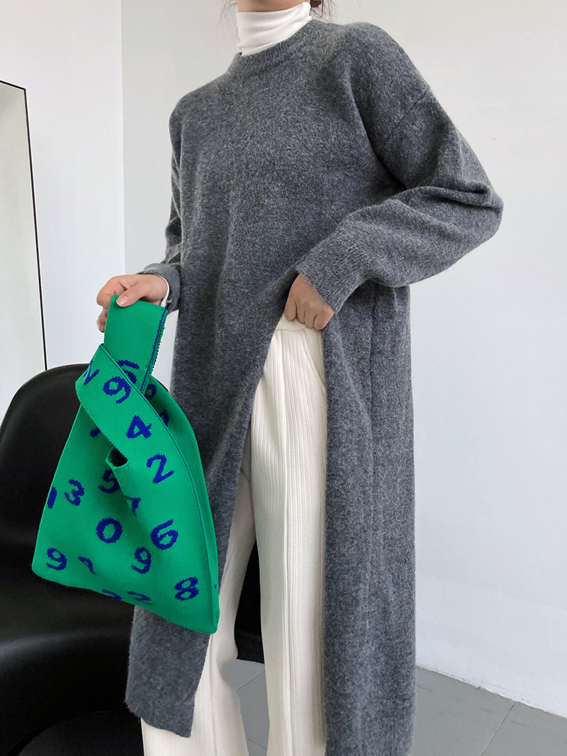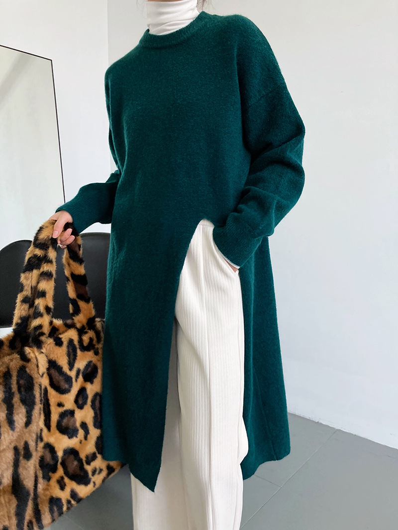 30代ファッションにぴったりの上品なロング丈ニットセーター。