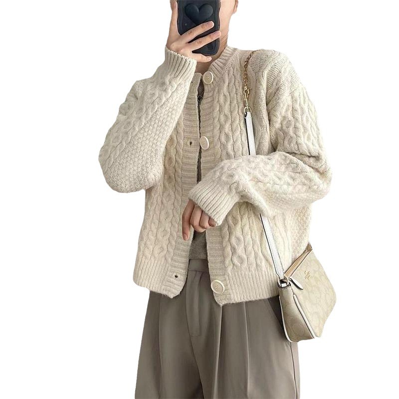 30代ファッションにぴったりの上品なケーブル編みカーディガン。